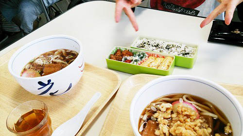 お弁当を持っていくこともありますが、誰かしら必ずうどんを食べてます